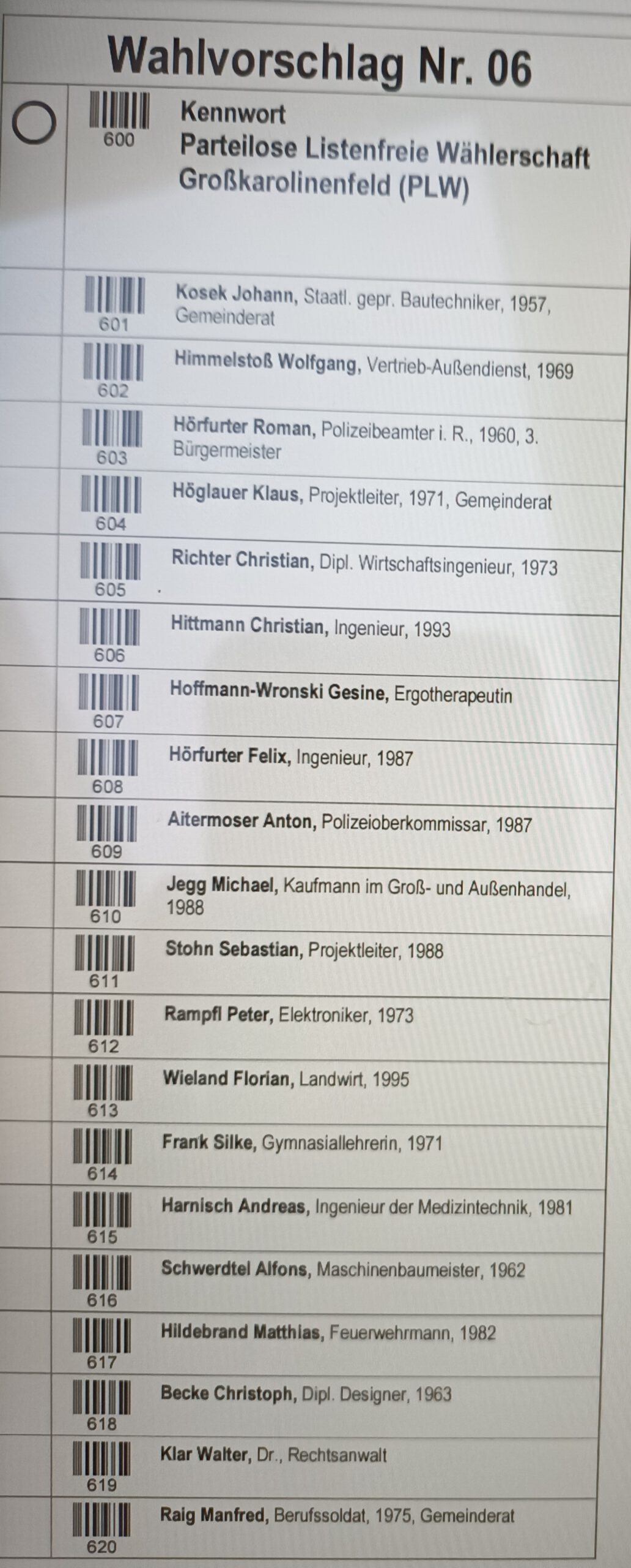 Anton Wallner, geb. 26.01.1966, selbst. Projektleiter; seit 1989 verheiratet; drei erwachsene Söhne; wohnhaft in Bad Feilnbach; reichlich gemeindepolitische Erfahrung aus 12 Jahren Gemeinderat und sechs Jahren Bürgermeister in Bad Feilnbach; in dieser Funktion hat er auch schon die Gemeinde Großkarolinenfeld in den Projekten LEADER* und MangfallEnergie beraten und hat dabei die Mehrheit des Gemeinderates von seiner hohen Sozial- und Fachkompetenz überzeugt.